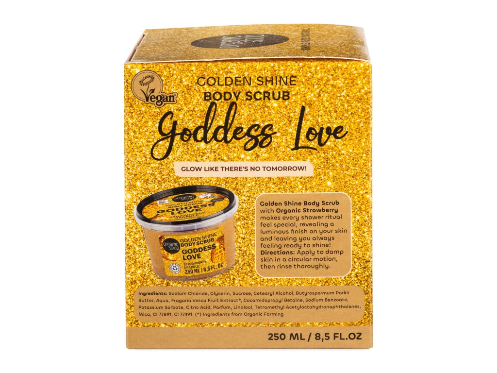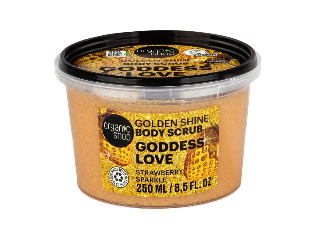 Golden Shine tělový peeling - s organickými jahodami dělá každou sprchu výjimečnou, dodává pokožce zářivý vzhled a vy se budete cítit vždy připraveni zazářit