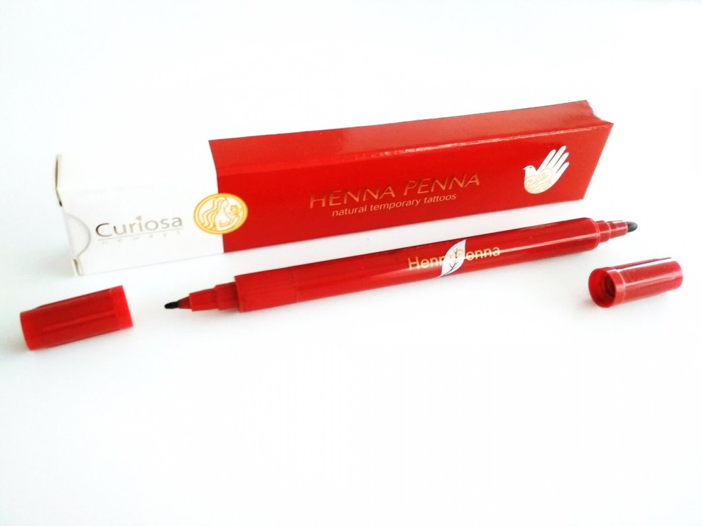 V krabičce najdete henna fix se dvěma konci, jeden je tenčí, druhý hrubší. Oba konce jsou uzavřeny víčky, aby nevyschly. Návod k použití přikládáme ke krabičce. Pero se nedá doplňovat.