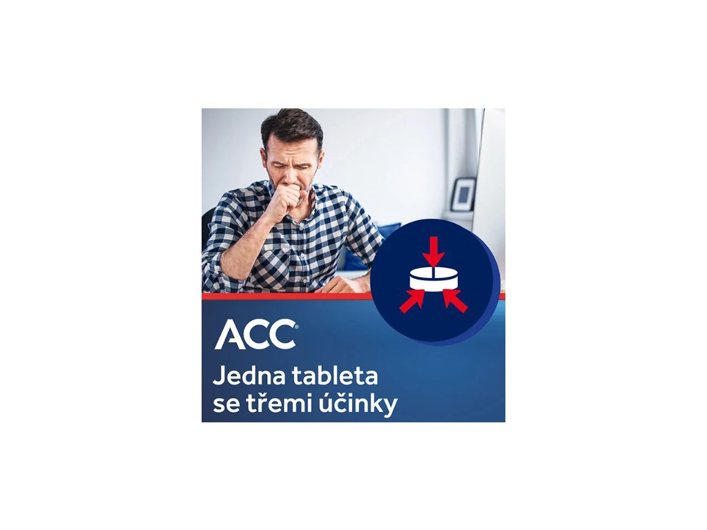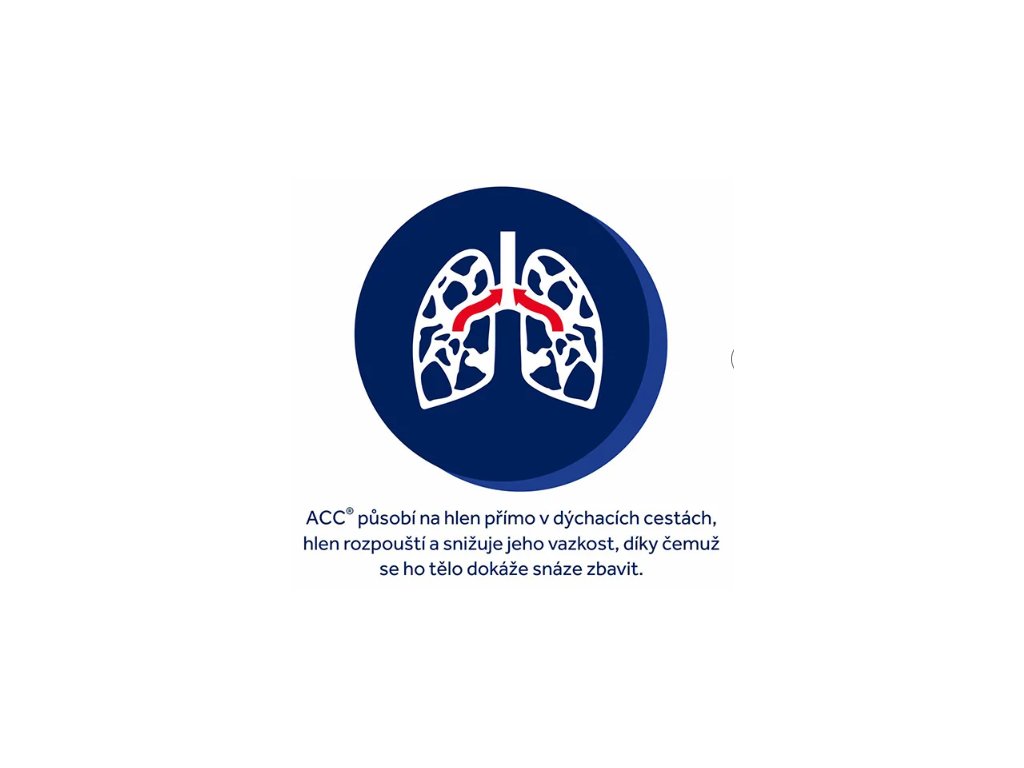 Vlhký kašel, zahlenění a problémy s vykašláváním jsou velmi nepříjemné příznaky nachlazení, kterých se chce každý co nejrychleji zbavit. Pro všechny, kteří nechtějí, aby jim kašel narušil plány, je tu ACC®. Užívejte od prvních příznaků kašle. ACC® Long 600 mg díky svému trojímu účinku rozpouští hlen, usnadňuje vykašlávání a chrání plicní buňky. Stačí jedna šumivá tableta denně.