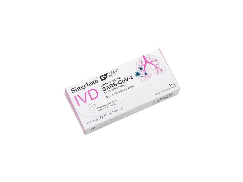 Imunochromatografický test na pevné fázi pro rychlé kvalitativní odhalování antigenu z COVID-19 ve vzorku lidského nosního výtěru.