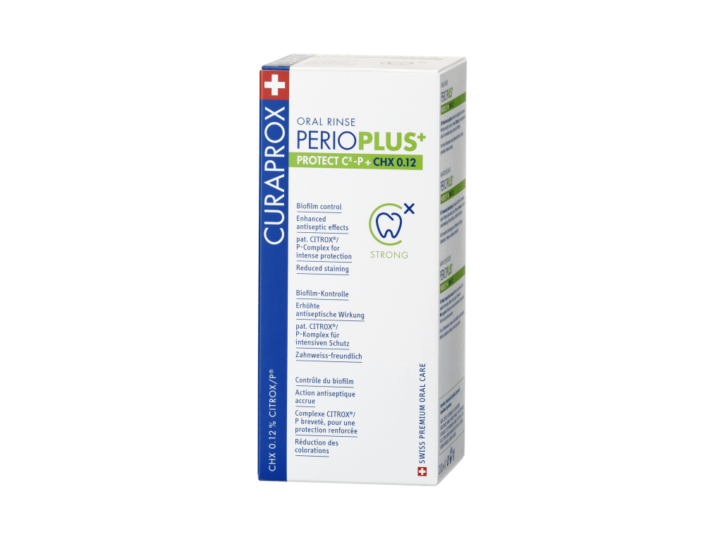 Ústní voda Perio Plus+ Protect obsahuje méně koncentrovaný roztok CHX, proto je ideální k dlouhodobému ochrannému použití proti zánětlivým projevům v dutině ústní – včetně zánětu dásní a periodontitidy.