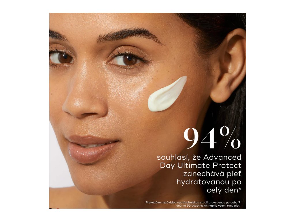 Složení je navíc obohacené o enzym pro opravu DNA nové generace, zvaný fotolyáza, který podporuje přirozené opravné mechanismy pleti po vystavení UV záření. Spotřebitelská studie prokazuje, že Advanced Day Ultimate Protect poskytuje všem typům pleti nemastný, nekomedogenní a neviditelný finiš* a lze jej použít jako podklad pod make-up.