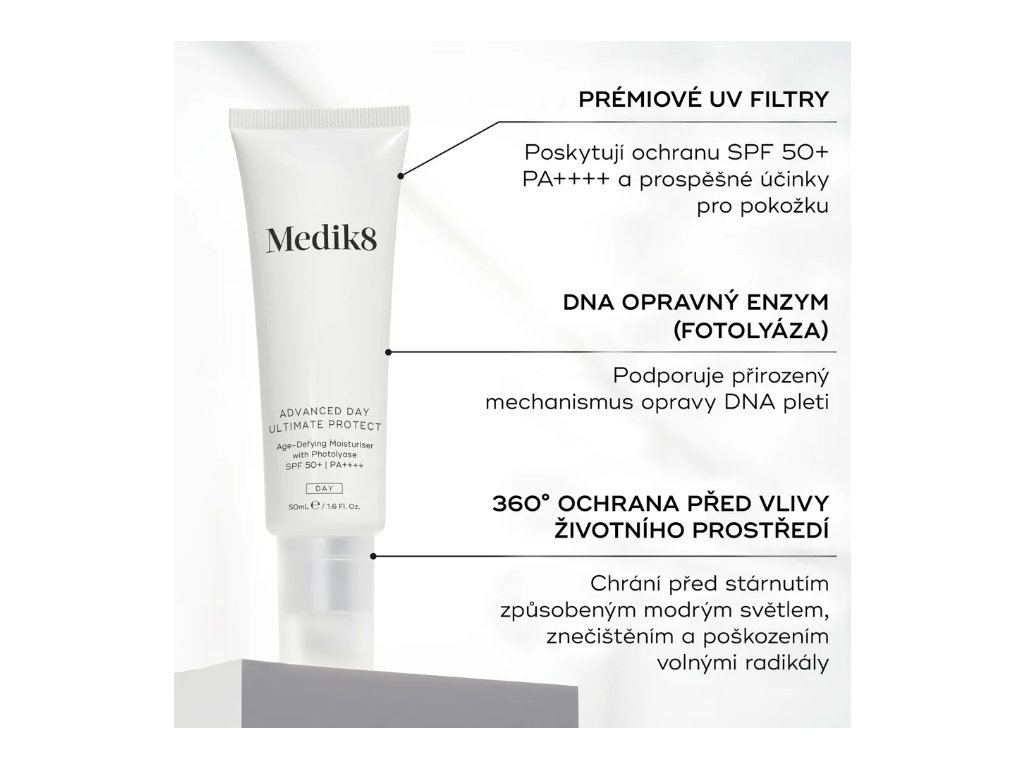 Medik8 se zaměřuje na cílená řešení problémů, jako jsou vrásky, pigmentace, akné, dehydratace nebo citlivost pleti. Produkty využívají stabilní formy aktivních látek – například vitaminu C, retinoidů, niacinamidu nebo kyselin – které zajišťují vysokou účinnost bez zbytečného podráždění.