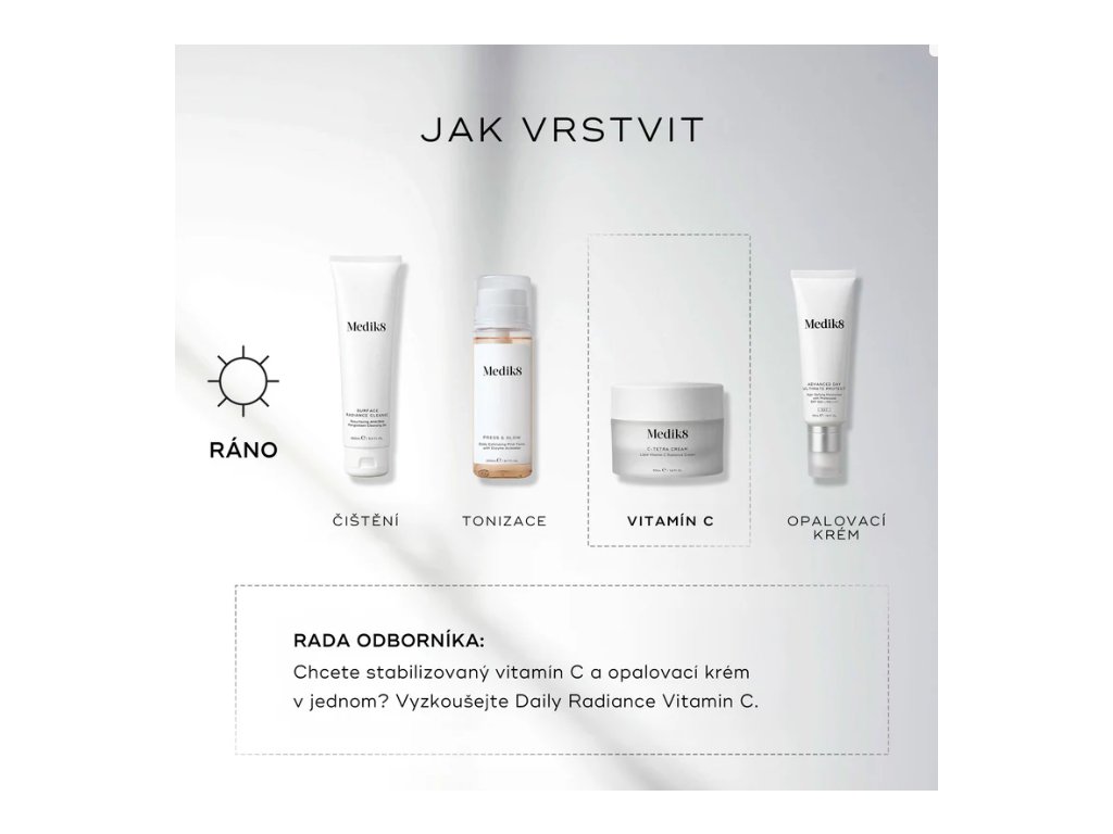 C – vitamin C ráno pro rozjasnění a ochranu,