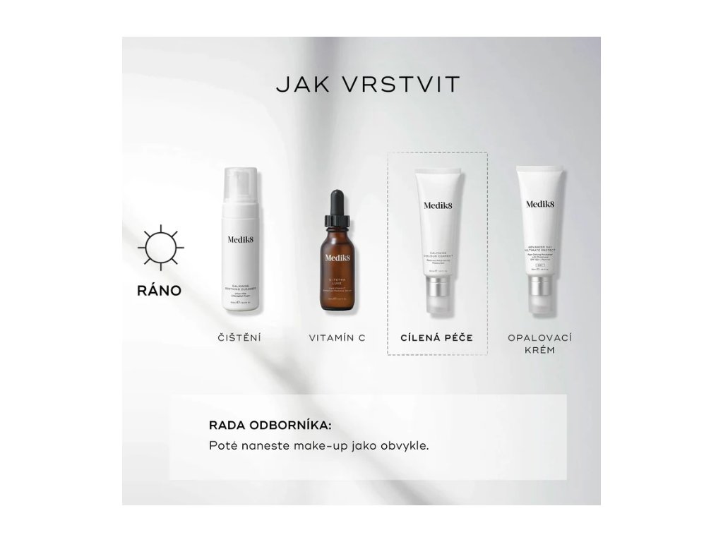 Medik8 se zaměřuje na cílená řešení problémů, jako jsou vrásky, pigmentace, akné, dehydratace nebo citlivost pleti. Produkty využívají stabilní formy aktivních látek – například vitaminu C, retinoidů, niacinamidu nebo kyselin – které zajišťují vysokou účinnost bez zbytečného podráždění.