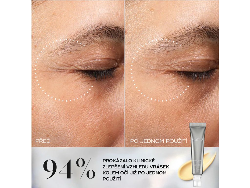 Probuďte se s mladistvějším vzhledem očního okolí, vyhlazenými vráskami, bez otoků a kruhů pod očima.