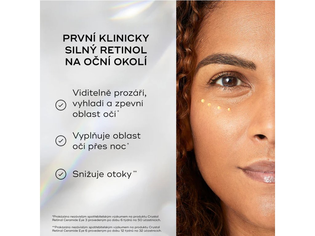 Crystal Retinal Ceramide Eye, který doporučují dermatologové po celém světě, je k dispozici ve 3 intenzitách (které jsou součástí našeho ikonického systému Crystal Retinal pro obličej), takže můžete užívat stále lepších výsledků.