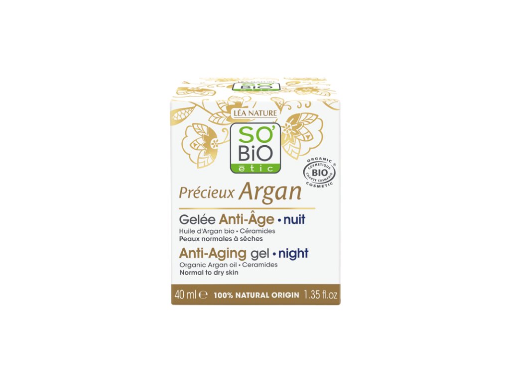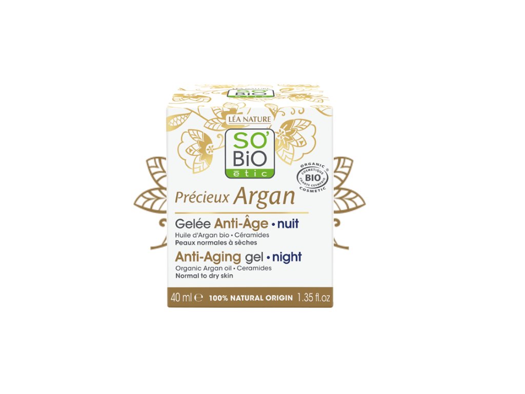 Noční gel je vhodný pro všechny typy pleti. Obzvláště pak pro ty, které se potýkají s vráskami a dalšími projevy stárnutí. Gel má vysoký obsah arganového oleje, který patří mezi nejluxusnější rostlinné oleje a díky jeho účinkům se mu také přezdívá marocké zlato. Má silné hydratační, anti-age a vyživující schopnosti. Obnovuje přirozenou ochrannou bariéru na pleti a zlepšuje její pevnost a pružnost.