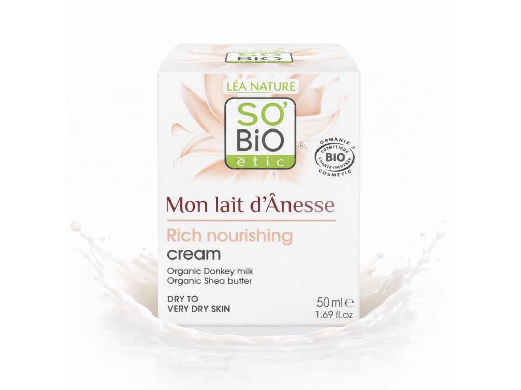 Výživný krém chrání pleť před škodlivými vlivy životního prostředí, uchovává dlouhodobou hebkost a jas. Obsahuje hydratační oslí mléko a výživné bambucké máslo. Je vhodný především pro suchou a velmi suchou pokožku. Hlavní účinnou složkou Hedvábného hydratačního krému od SO´BiO étic je oslí mléko, na jehož zkrášlující účinky nedala dopustit už samotná Kleopatra. Toto mléko má hydratační a regenerační účinek. Pokožku zároveň úžasně zjemňuje.
