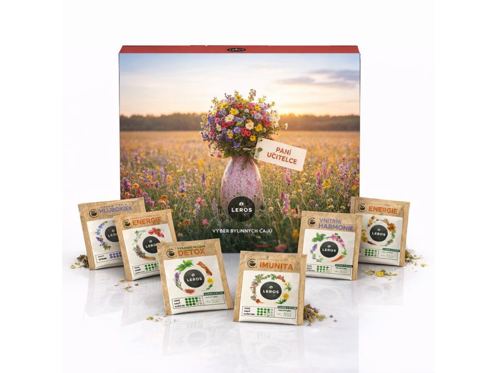 Výběr 6 druhů voňavých bylinných čajů v dárkové kazetě (6x5 čajů). Jedinečný dárek jako poděkování za proběhlý školní rok.