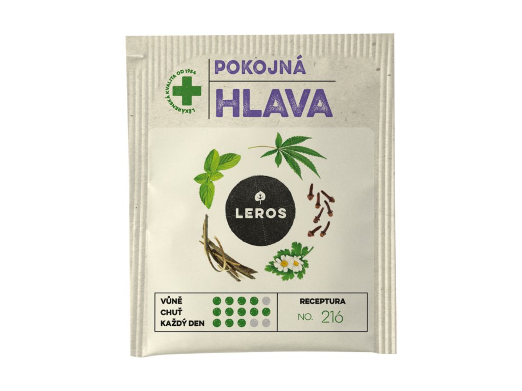 Složení: | Nať konopí (30 %), nať máty peprné (30 %), vrbová kůra (15 %), hřebíček (15 %), nať řimbaby (10 %). |