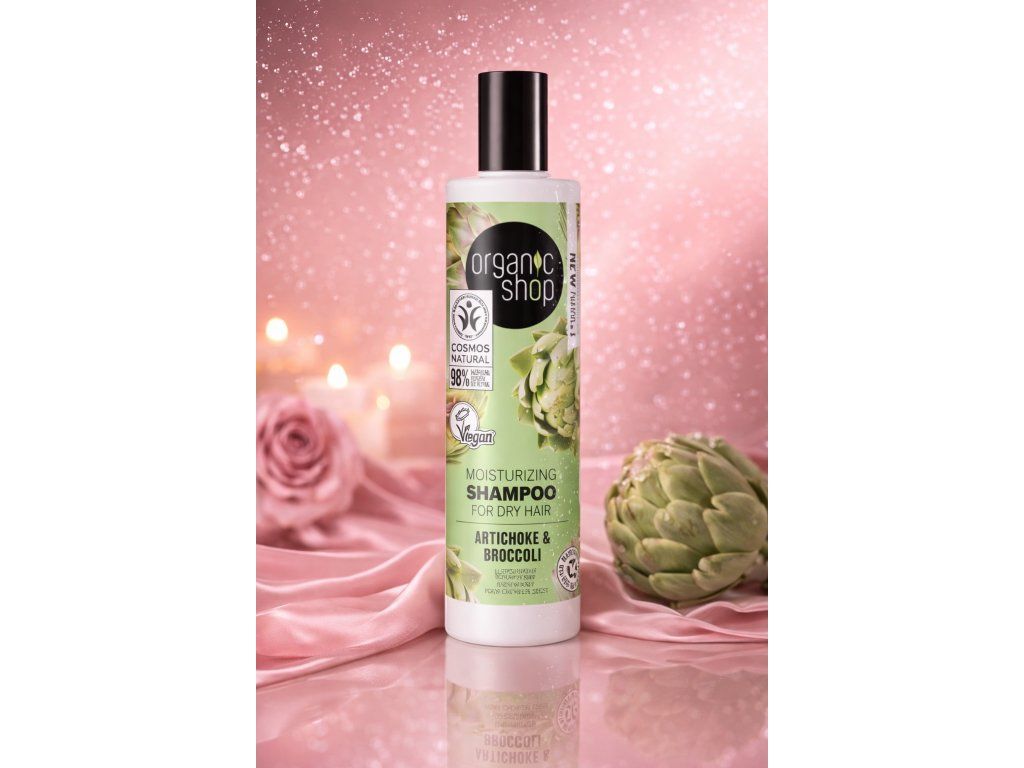 Hydratační šampon na suché vlasy artyčok a brokolice od značky Organic Shop dokonale vyživuje a zvláčňuje namáhané vlasy. Dodává jim lesk a vitalitu. Šetrně myje a zklidňuje citlivou pokožku hlavy. Obsahuje přírodní organické výtažky z bylin a vitaminy B1 a B2. Tyto složky uhlazují vlasové vlákno a podporují jeho svěžest a vitalitu bez zatížení. Perfektně připravuje délky na následnou péči kondicionérem. Po umytí budou vaše vlasy hedvábně hebké a viditelně pevnější a pružnější.