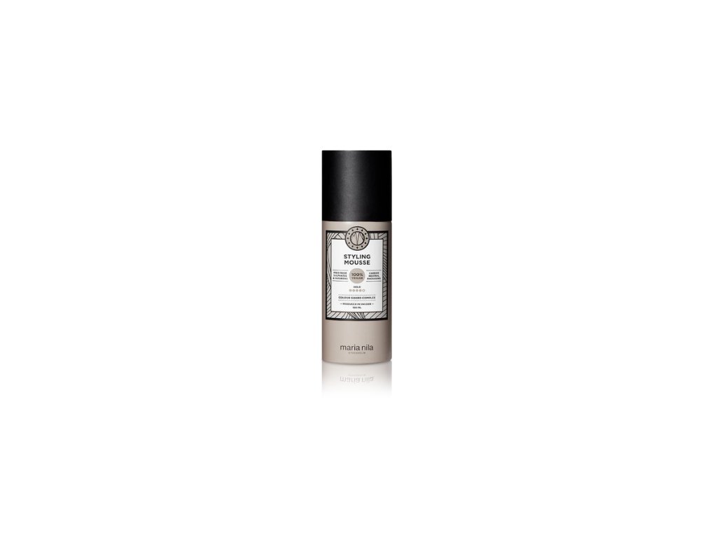 MARIA NILA STYLING MOUSSE je jemné a objemové tužidlo na vlasy se střední fixací, které zanechává vlasy lesklé a zdravé. Velmi snadno se vyčesává a nelepí. Obsažený Color Guard Complex chrání vlasy před UV zářením a volnými radikály a zajišťuje delší životnost barvy vlasů.